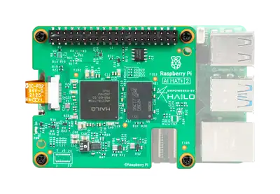 L’AI HAT+ intègre directement la puce accélératrice Hailo sur le PCB principal, contrairement à l’AI Kit qui utilise un module M.2. Cette intégration simplifie l’installation, améliore la dissipation thermique et permet un traitement plus stable des charges de travail IA intensives.