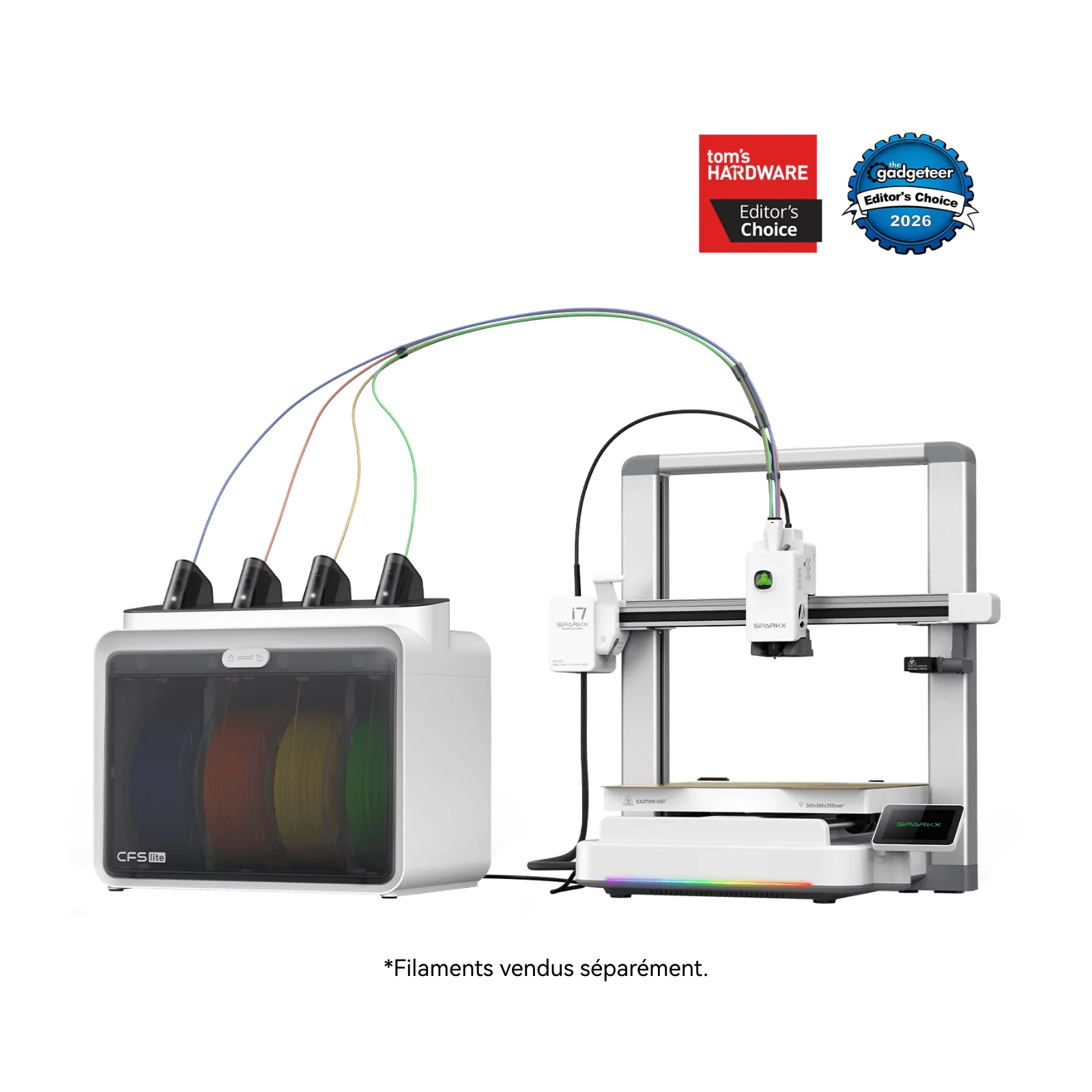 Multicolore Intelligent (CFS Lite) : Gérez jusqu’à 4 couleurs simultanément avec un système qui réduit le gaspillage de filament de 50% par rapport aux générations précédentes.