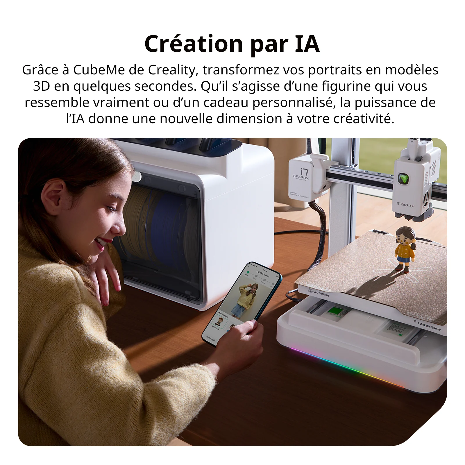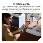 Technologie CubeMe AI : Une exclusivité Creality qui permet de transformer une simple photo 2D en modèle 3D imprimable en quelques clics via le Cloud.