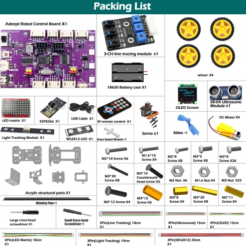 • Compatibilité Totale : La carte de contrôle Adeept est entièrement compatible avec l’IDE Arduino, facilitant ainsi l’écriture et le téléversement de code.